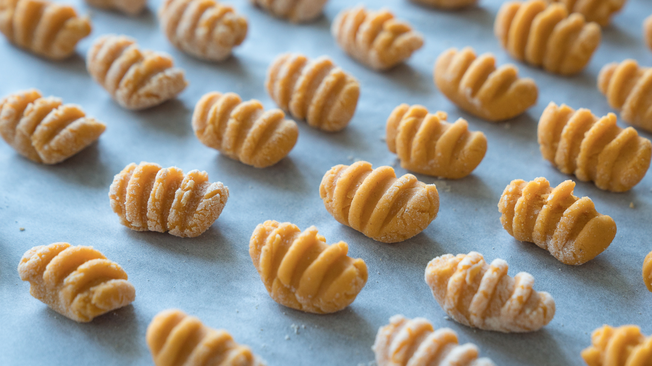 Watch this video on Cutting & Shaping Gnocchi for a visual guide of how to cut and shape the gnocchi dough.