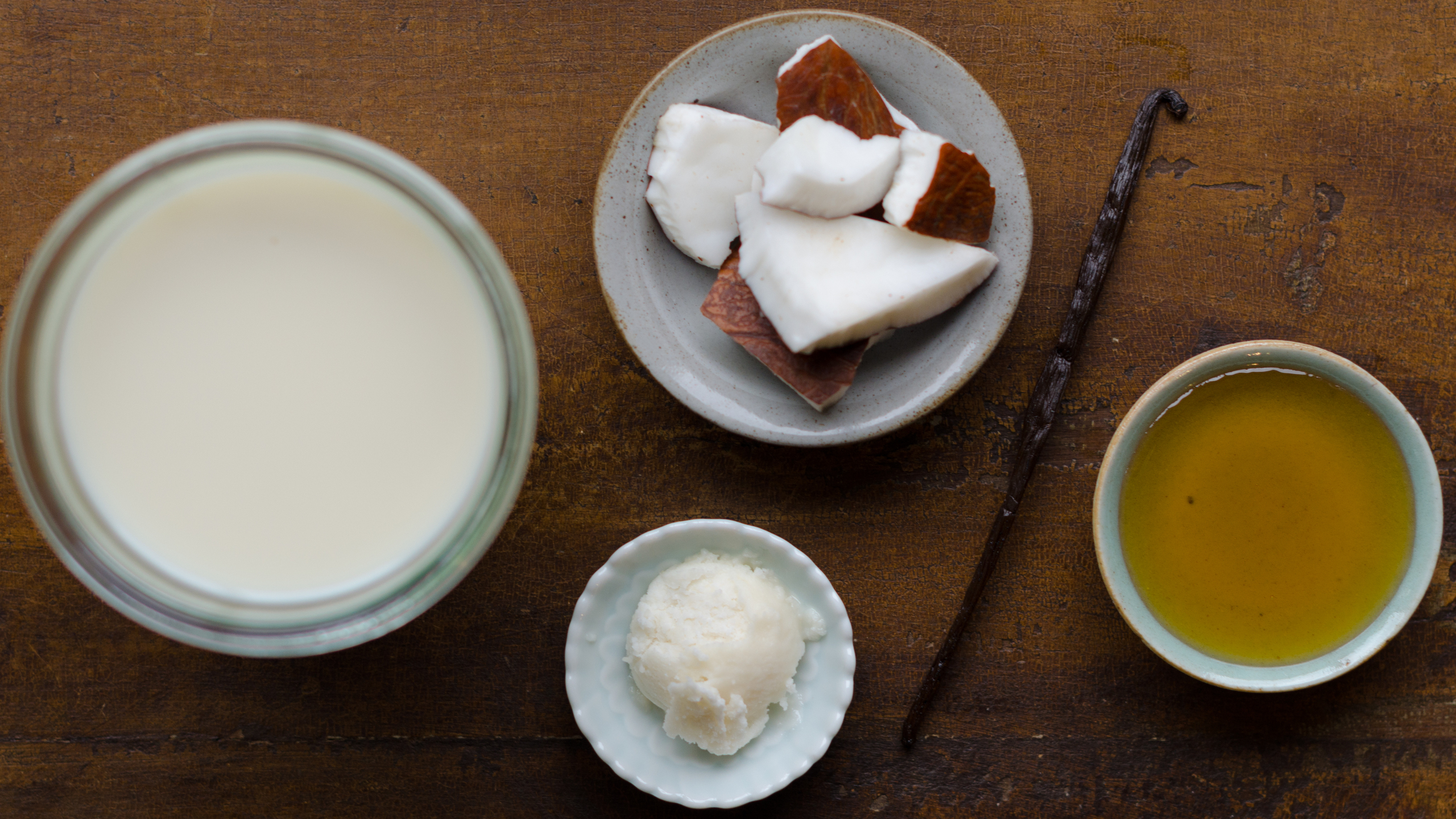 Place the milk in a high-speed blender. Add the vanilla seeds, coconut meat, liquid sweetener and coconut butter and process until VERY smooth.