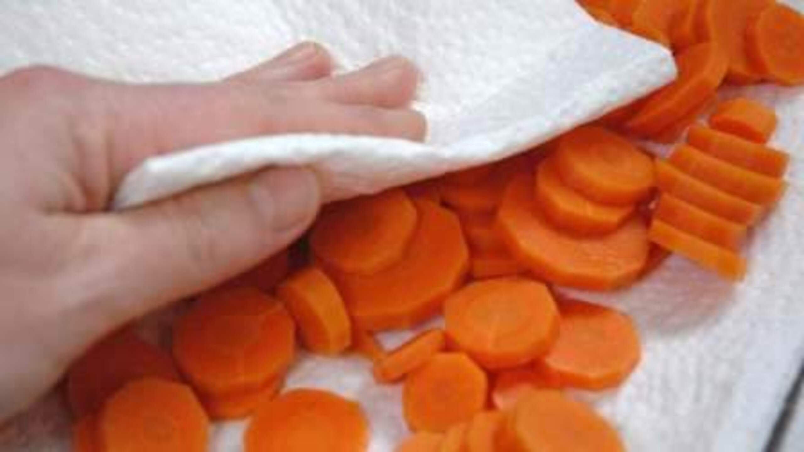 Once the carrots have completely cooled, pat dry with paper towels.